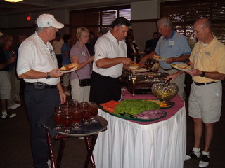 Las Vegas, the city that never sleeps, was the 2008 WEC host city and host MPI they did! The opening night began with a gala welcome reception and dinner at Caesar's Palace. The evening was surely fit for a king! Guests were greeted outside the casino with a red carpet entrance. Several members of the Kings' Court were on hand to greet each guest as they entered the venue. The massive ballroom was wrapped completely in pipe and drape, dividing it into several sections. Floral arrangements and shelves holding hors d'oeuvres were suspended from the ceiling. Giant ice sculpture bars hosted sushi and other raw bar items. And let's not forget about the delicious pomegranate martinis! With music and visual objects and scenes streaming constantly, it was party for the senses.