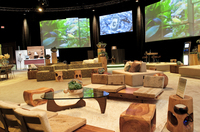 This photo of the 2012 Sprint Recharge Lounge at CTIA in San Diego features many of Sprint’s green practices, including use of reclaimed or recycled materials, living floral and limited use of printed materials.
