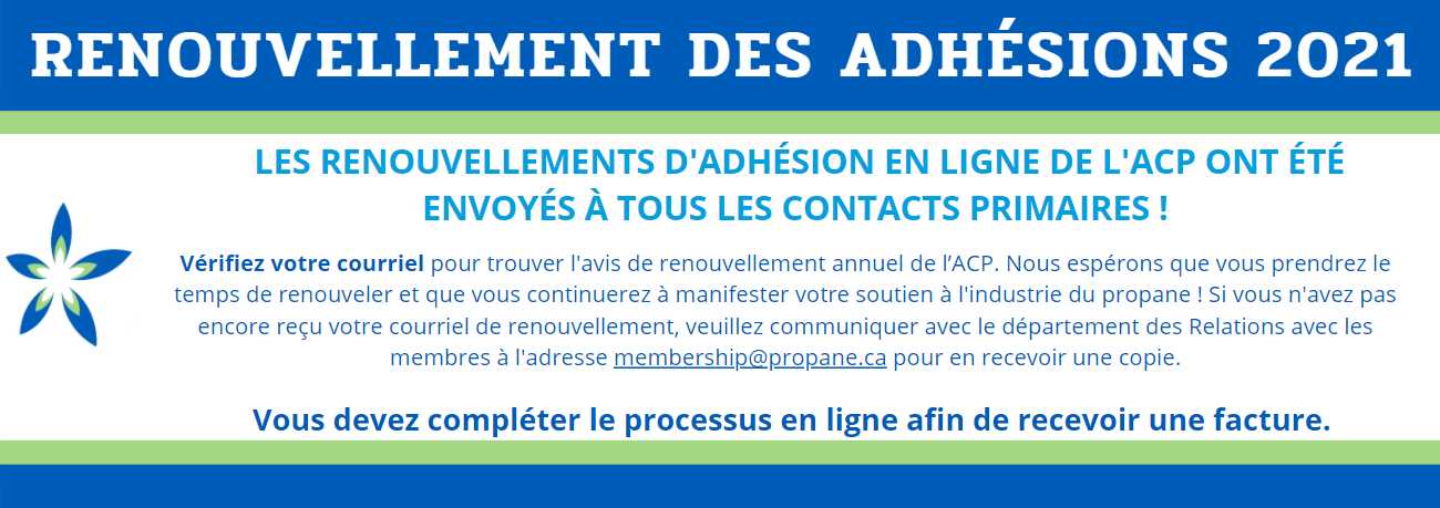Pour plus d'informations : Contactez Sherri Clair, Événements et Relation avec les membres, à l'adresse suivante : sherriclair@propane.ca.