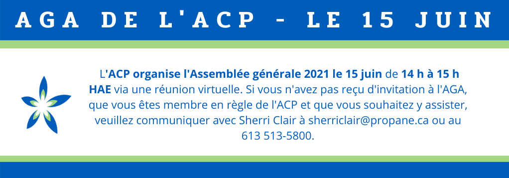 Voici la photo suivante dans notre retour dans le temps, pour découvrir une partie de notre passé. Personne n'a été en mesure d'identifier les personnes figurant sur nos dernières photos, nous espérons donc pouvoir rafraîchir votre mémoire avec celle-ci. Le gagnant recevra un cadeau spécial de l'ACP ! Veuillez faire parvenir votre réponse à Tammy Hirsch, Directrice principale, Communications et Marketing.Au cours de la semaine du 24 mai 2021, le Comité consultatif sur la politique générale (CCPG) s'est réuni pour discuter des éléments spécifiques à l'industrie qui se rapportent au transport de marchandises dangereuses. Lors des réunions, Transports Canada (TC) a soulevé une question qui concerne le propane, à savoir son intention de proposer une hausse de frais pour les installations de citernes routières. Cette hausse proposée serait structurée de manière très similaire à celle proposée par la TSSA. Au lieu d'émettre une facture distincte pour chacun des services rendus – comme c'est actuellement le cas – TC a l'intention de facturer un taux forfaitaire.