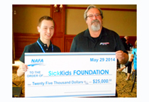 Michael Cole, NAFA Ontario's Chapter Chair, presented a check for $25,000 for the SickKids Hospital. The Ontario Chapter hosted 155 members and guests at Copper Creek north of Toronto on May 29. The event included a round of golf, silent auction, and a 50-50 draw with a prize of $825 that the winner donated to the SickKids Hospital.