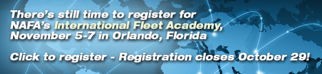 NAFA will be hosting the Fourth Annual International Fleet Academy November 5-7 at the beautiful Rosen Shingle Creek Resort in Orlando, FL. Registration closes October 29, so don't miss out on the global fleet conference of the year!