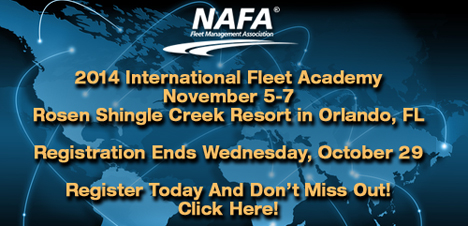 NAFA will be hosting the Fourth Annual International Fleet Academy November 5-7 at the beautiful Rosen Shingle Creek Resort in Orlando, FL. Registration closes October 29, so don't miss out on the global fleet conference of the year!