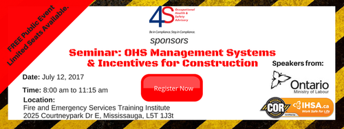 Another course being offered is a half-day event focusing on having a well-functioning safety management system - it's an investment for your business. Having a robust health and safety management system saves lives, time and money. This is a must for all those who are planning on or working towards accreditation like COR™, OHSAS 18001, CSA Z1000, etc. Click here to register.