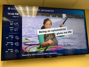 ASCO’s Optometry Gives Me Life videos are part of the on-campus messaging seen by prospective students and others on the campus of Southern College of Optometry.