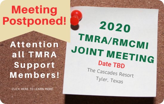 Mark your calendars for the TMRA Annual Meeting! DATE: Oct. 18-20, 2020 LOCATION: Horseshoe Bay Resort (Horseshoe Bay, Texas) *Look out for more details this summer!