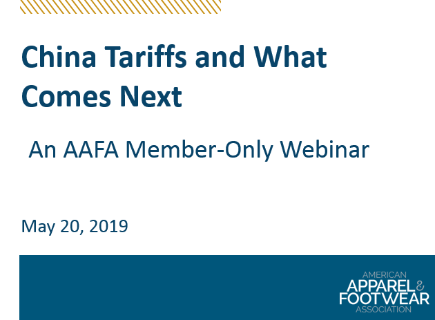 1) Submit comments and testify on Tranche 4: Industries will have the opportunity to speak out through public comments and testimony. While AAFA plans to testify, we also encourage individual companies to get involved. Contact Steve Lamar and Nate Herman with questions.