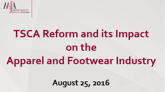 August 25 Webinar: TSCA Reform and its Impact on the Apparel and Footwear Industry (for AAFA members only)