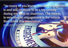 It is a pleasure to address AAHOA members, vendor partners and industry professionals for the first time as AAHOA chairman. I am prouder than I can say of what AAHOA has accomplished and become in the 27 years since its founding, and it is my honor to serve as your leader in 2017. As many of you know, member engagement is and will continue to be a top priority during my term as chairman. The reason is very simple: engagement is the vehicle that drives this association.