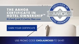 As the economy continues to move toward reopening fully, now is a great time to take advantage of AAHOA's all-encompassing Certificate in Hotel OwnershipTM (CHO). This reimagined CHO is a fully customizable all-digital platform that offers an in-depth look into 12 learning tracks: Investment & Development, Front Office, Financing, Hotel Ownership, Human Resources, Accounting, Major Support Departments, Leadership, Legal & Compliance, Revenue Management, Sales & Marketing, and Technology. If you sign up by 11:59 p.m. ET on Aug. 9 using promo code WELCOME20, you can earn your certificate for as little as $149, so don't wait! Learn more here.