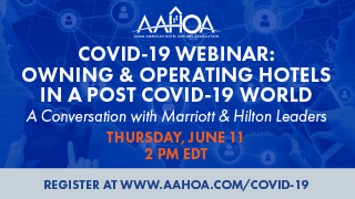 The COVID-19 pandemic has radically altered the way the hotel industry has to service guests, staff properties, and transact deals, and brands and owners alike have had to adjust. Join us at 2 p.m. EDT Thursday, June 11 for a virtual event, Owning and Operating Hotels in a Post-COVID-19 World: A Conversation with Marriott and Hilton, as AAHOA Treasurer Vinay Patel, Washington, DC Area Regional Director Sandip Patel, Marriott SVP, Owner & Franchise Services Karen Finberg, and SVP, Global Head of Hampton by Hilton Shruti Buckley detail the changes they're making. Moderated by David Eisen, Director of Hotel Intelligence, Americas, at HotStats, the panel will discuss what they're doing to tackle the challenges now and ahead to succeed in this strange new landscape.