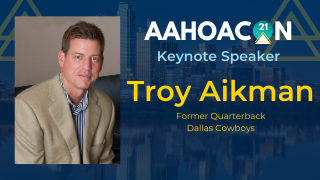 Troy Aikman has harnessed the drive and dedication that formed the foundation of his Hall of Fame football career with the Dallas Cowboys in numerous successful business ventures since retiring from the game following the 2000 season. Through broadcasting, real estate, and The Troy Aikman Foundation, the three-time Super Bowl winner has quickly discovered numerous ways to keep himself occupied in “retirement.” Gear up to join us by applying this exclusive AAHOACON21 Facebook frame to your profile picture and using this flyer with important links on how to register and get ready for Dallas, Then, RSVP and share your excitement on LinkedIn and invite your connections to attend. We can’t wait to see you in Dallas, so register today! Reminder: Lifetime Members, you're eligible for complimentary registration to the convention if you register on or before Sunday, June 4.