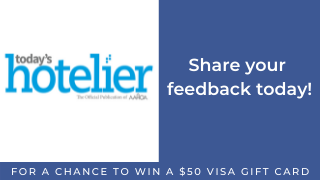 In an effort to ensure that we're delivering top-quality communications and resources to help hoteliers, we'd like to invite you to participate in this brief Today's Hotelier readership survey. To thank you for your time, at the end of the survey, if you choose to share your contact info, you will be entered into a drawing to win one of three $50 VISA gift cards. Your personal information will be kept completely confidential and will only be used to contact the winners.
