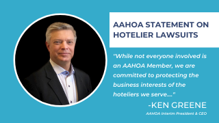 AAHOA Interim President & CEO Ken Greene recently issued a statement in response to several lawsuits filed by hoteliers against their brands: “We are aware of several lawsuits recently filed by hoteliers against their brand. While not everyone involved is an AAHOA Member, we are committed to protecting the business interests of the hoteliers we serve. Because litigation is often the product of lack of necessary communication or a failure to reach a mutual understanding, AAHOA sees these lawsuits as an opportunity to increase dialogue, understanding, and communication between franchisees and franchisors – which will in turn create a better brand and customer experience." Read the full statement.