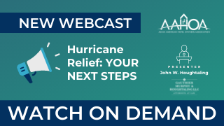 Are you enduring hurricane season as a hotel owner and operator? Hurricane Ida and other natural disasters have done catastrophic damage to businesses in our industry and the hurricane season is just getting under way. This timely webcast featured John W. Houghtaling II, managing partner of AAHOA Club Blue Partner Gauthier Murphy & Houghtaling, LLC, who discussed how to seek guidance and determine next steps for hurricane recovery and relief for your hotels. Watch the on-demand video.