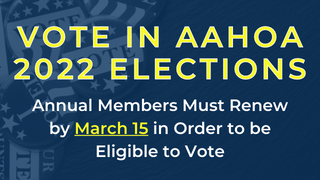 AAHOA will debut electronic voting at AAHOACON22, which changes eligibility requirements for the 2022 Elections. In order to be eligible to vote, you MUST: Have become a Lifetime Member on or before Dec. 31, 2021, or have paid annual membership dues no less than twice in the previous three calendar years and renew your annual membership for 2022 no later than Tuesday, March 15. Don't miss out, renew today!