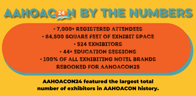 And, while we're still a year away from AAHOACON25, initial feedback has been overwhelming. Currently, 134 exhibiting companies are already signed up for AAHOACON25, with many more to follow. Additionally, 100% of all exhibiting hotel brands rebooked for next year.