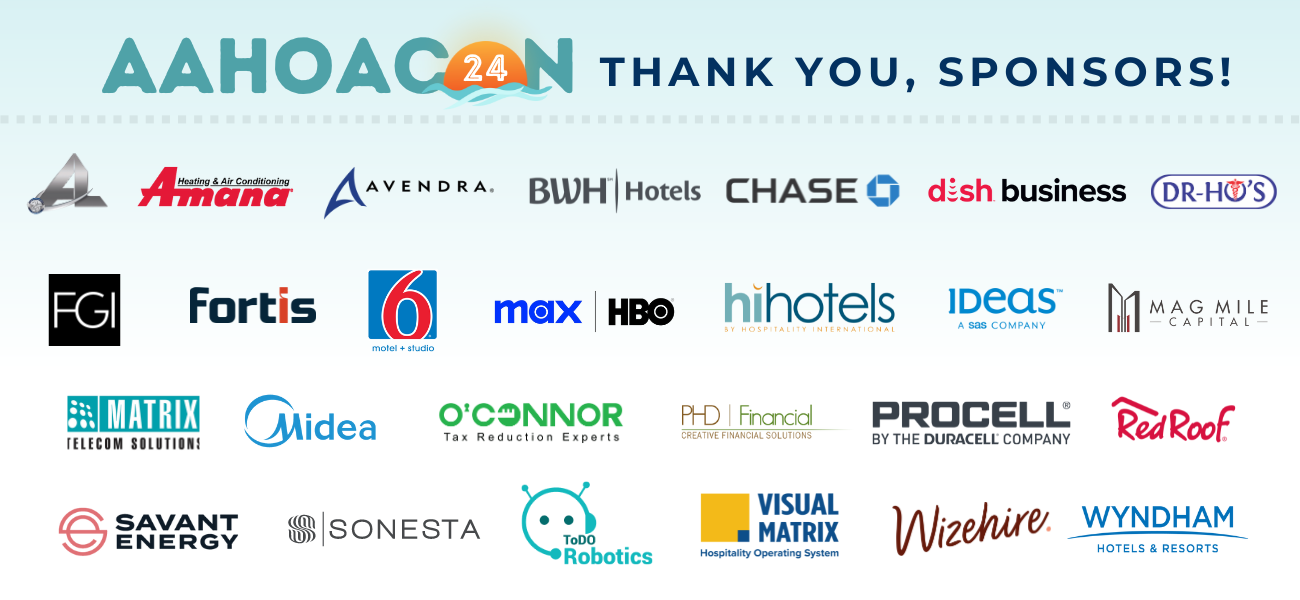 AAHOA would like to thank all our valued sponsors for their support, partnership, and participation at AAHOACON24! You are a vital part of making this event possible. We couldn’t have done it without all of you.
