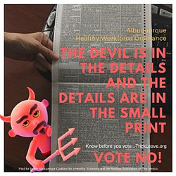 Under the dictates of the 7-page ordinance there is a statement that "An employer with a paid leave policy that meets or exceeds the requirements of this Ordinance is not required to provide additional paid sick leave or in any way reduce benefits provided to employees." However...the devil is in the details... Vote Against the Proposed Sick Leave OrdinanceThe Apartment Association of NM opposes the proposed sick leave ordinance as it could result in patchwork of regulations. AANM is supportive of the sick leave issue being considered by the NM Legislature.