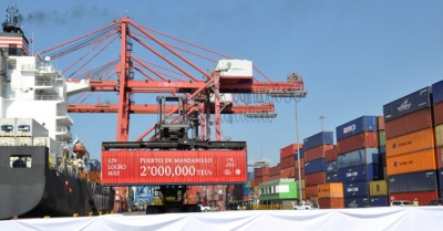 | Manzanillo (México): dos millones de TEUs  El 19 de diciembre se consolidó un logro más. Teniendo como sede  el muelle 10 de la Terminal de SSA México se dio inicio a la celebración de los 2 millones de TEUs en el Puerto de Manzanillo, lo que constituye un precedente histórico así como el compromiso de seguir trabajando en conjunto con  toda la Comunidad portuaria y en miras de un futuro óptimo para todos. En ese sentido, expresó el Director General de la API de Manzanillo, Dr. Jesús Orozco Alfaro que con todo el respaldo que está recibiendo la API Manzanillo de la Coordinación General de Puertos y del Señor Secretario de Comunicaciones y Transportes, así como la excelente coordinación con el Gobierno Estatal, Municipal y la participación de la comunidad portuaria, sin duda vienen los mejores años para Manzanillo. El evento fue presidido por el Coordinador de Puertos y Marina Mercante, Guillermo Ruiz de Teresa y se conto con la honorable presencia del  Lic. Mario Anguiano Moreno, Gobernador del Estado de Colima, así como de Virgilio Mendoza Amezcua, Presidente Municipal de  Manzanillo, Dip. Fed. Arnoldo Ochoa Gonzalez, Presidente de la Comisión Especial de Puertos y Marina Mercante, Dip. Nabor Ochoa López, Senadora Mely Romero Celis, Almte. David Lendeche Sofán, Comandante de la Sexta Región Naval, Cap. de Alt. Idelfonso Carrillo Mora, Capitán del Puerto de Manzanillo, C. Manuel  Fernandez Pérez, Director General de SSA México, C. Pedro Michel Medina, Representante del Sindicato de SSA México, Lic. Oscar Benavides Carrillo, Presidente de la AAAPUMAC, Lic. Jorge Daniel Castro Acedo, Administrador de la Aduana Manzanillo, Lic. Blanca Hernandez Becerra, Presidente de AMANAC Manzanillo. Ruiz de Teresa comentó "Se dice fácil, pero debemos considerar que en todo el país se mueven 4.8 de contenedores y Manzanillo está moviendo casi de la mitad de estas cantidades, en donde rebasamos por mucho a Lázaro Cárdenas, Veracruz y Altamira, por mencionar a los puertos más importantes del país". Afirmó que la seguridad tanto del lugar como de todo el estado de Colima, y el trabajo conjunto de los tres niveles de gobierno, permitieron alcanzar esta meta. Al evento asistieron los ex directores de API Manzanillo, Lic. Julián Dip Leos, C.P. Carlos Cabanillas, Cap. Héctor Mora Gómez y Ing. Enrique Michel Ruiz. También se contó con  la presencia de diferentes actores de la comunidad portuaria, navieras, operadoras, transportistas, maniobristas, autoridades, aduaneros, asociaciones, miembros de gobierno Estatal y Municipal, así como trabajadores de la empresa SSA. Al cierre del año 2013 el Puerto de Manzanillo deja claro una vez más por qué es el puerto más importante a nivel nacional y líder en movimiento de carga contenerizada.