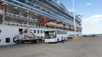 A pesar del fuerte viento reinante, con sus 289 metros de eslora y 36 metros de ancho, tomó amarras a primera hora de la mañana en el muelle Comandante Luis Piedrabuena, frente al centro comercial de Madryn. El hecho, "para la Administración Portuaria y el sector turístico es muy relevante ya que hace apenas una semana tuvimos que decirle a este mismo crucero que no estaban dadas las condiciones, ni las garantías para que pudieran ingresar sus pasajeros, por lo que debió levantar la escala".