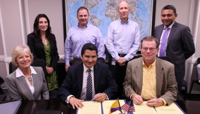 ![]() El Gerente General de Santa Marta Mauricio Suárez (izq.) y el Director Ejecutivo de Port Corpus Christi John LaRue firman el renovado Memorándum entre ambos puertos. Foto/Port Corpus Christi