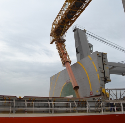 I![]() Fotos/Puerto Bahia Blanca El pasado 14 de abril se llevó a cabo la primera operatoria comercial en este buque. El buque Angelic Glory de 225 de eslora fue quien estrenó la obra cargando 20.000 toneladas de poroto de soja para China. En el día de hoy el buque que está trabajando es Carina Ocean de 190 de eslora, que se encuentra cargando 12.000 toneladas de poroto de soja con destino Malasia.
