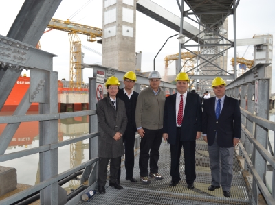 Foto/Puerto Bahia Blanca El Ministro de la Producción, Ciencia y Tecnología de la Provincia de Buenos Aires, Cristian Breitenstein, recorrió durante la mañana del 25 de abril el nuevo muelle con el que cuenta el Puerto de Bahía Blanca. Alfred Toepfer International Argentina realizó esta importante inversión de 32 millones de dólares reflejando de esta manera las potencialidades del ámbito portuario local.