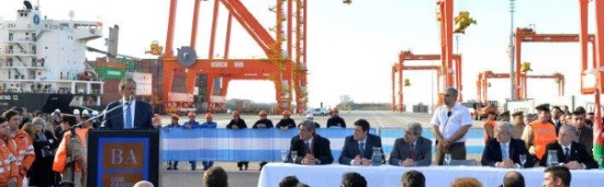 El gobernador Scioli inició operaciones en el Puerto La Plata con la llegada de un buque nacional El gobernador Daniel Scioli, acompañado por el presidente del Consorcio de Gestión del Puerto La Plata, Mariano Goyenechea, aseguró el 8 de julio que "acá está la decisión política, acá está nuestra vocación por el progreso y el desarrollo argentino", al encabezar el acto de inicio de operaciones de la Nueva Terminal de Contenedores TecPlata, con la llegada de un buque de bandera nacional que transporta producción fabricada en Tierra del Fuego, y con tripulación argentina. El buque que hizo su ingreso a la terminal fue el MV Argentino II, de la empresa Patagonia Shipping Lines. "Es la victoria de un federalismo productivo a partir de potenciar regiones urbanas para el desarrollo", resaltó Scioli al referirse a la operación que promueve e impulsa el desarrollo de cabotaje nacional, con la llegada del primer barco portacontenedores a este moderno puerto que cuenta con una terminal exclusiva para manipular contenedores de manera ágil y eficiente. El Gobernador detalló que se trata de "una inversión de más de 450 millones de dólares en la que trabajaron 600 personas, donde hoy hay 500 en forma operativa, en un puerto que tiene los estándares de eficiencia, de control, de ahorro del tiempo, siete horas menos tienen los buques cuando salen e ingresan a través de este canal, que tiene 34 pies, de acuerdo a las exigencias de los buques". Scioli puso en relieve que "los puertos son un imán para la inversión, que es lo que le va a dar sustentabilidad a todo este desarrollo y crecimiento", junto al vicegobernador, Gabriel Mariotto; el presidente de la Cámara de Diputados de la Nación, Julián Domínguez; el jefe de Gabinete de la Nación, Aníbal Fernández; el intendente de Berisso Enrique Slezack y el presidente del Grupo Newsan, Rubén Cherñajovsky. "Acá está el mayor desarrollo portuario de los últimos cincuenta años en la Argentina", subrayó el Gobernador, al tiempo que aseguró que así "descongestionaremos el puerto de Buenos Aires y gracias a su cercanía con los grandes centros industriales potenciaremos el área Metropolitana, porque está estratégicamente vinculado, a través de la nueva Autopista Buenos Aires-La Plata y la Ruta 6, con todo el país y los tráficos de cargas del Mercosur". Por su parte, Aníbal Fernández puso en valor "la gran apuesta al crecimiento y al desarrollo, por una provincia mucho más grande y más pujante y más locomotora de lo que sido hasta este momento".