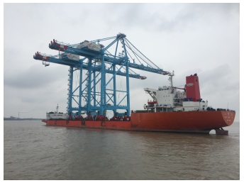 Heavy lift ship M/V Zen Hua 23 departing Shanghai with two super post-Panamax cranes for APM Terminals Mobile