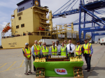 Port Freeport welcomed the M/V DOLE AZTEC at the Velasco Container Terminal on its first call to the United States. Port Freeport Executive Director/CEO Phyllis Saathoff, Port Commission Chairman Shane Pirtle, and Port Commissioners presented a plaque to commemorate the occasion to Master of the Vessel, Captain Kazimir Botica, and to Dole’s Operations Finance Manager Stephen H. Hylton and Freeport Terminal Manager Chris Noble.