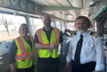 Ports of Indiana-Burns Harbor opened the 2023 international shipping season on April 11 with the arrival of Polsteam’s Isadora, a bulk carrier coming from Ijmuiden, Netherlands through the St. Lawrence Seaway and Great Lakes. To commemorate the first ocean vessel of the year, the captain was presented with the Ports of Indiana ‘Steel Stein.’