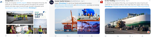 ¡El Día de los Puertos 2021 fue un esfuerzo increíblemente exitoso! La comunidad marítima se unió para celebrar a los puertos y su fuerza laboral por su dedicación en estos tiempos desafiantes para impulsar la recuperación económica, mantener un flujo de mercancías seguro y eficiente e invertir en el desarrollo de la fuerza laboral para un mejor mañana. La AAPA extiende su más sincero agradecimiento a sus numerosos miembros y socios de la industria por sus impactantes publicaciones en el Día de los Puertos.