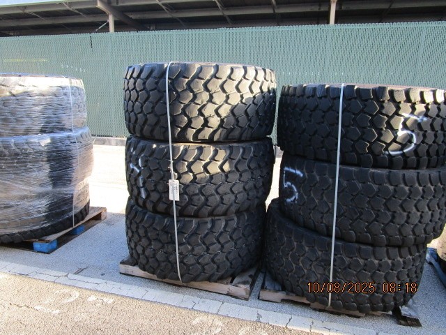 These are Michelin XZL 24.00R21 tires for on/off-road fire truck and heavy truck applications. Tubeless tires have a radial ply construction and H load rating for durability and reliability. They are made from natural rubber for performance without flaps and is specifically used on the P-23 firetruck. It is in repairable condition.