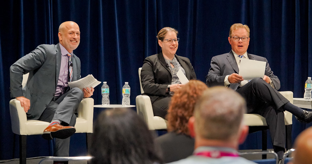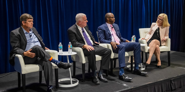 ACI-NA Vice Chair Lew Bleiweis led three airport professionals in a discussion on how airports across the U.S. and Canada approach and manage capital projects, particularly infrastructure projects. Los Angeles World Airports’ Robert Gilbert, Paslay Management Group’s Margaret McKeough (formerly of the Metropolitan Washington Airports Authority), and the Port Authority of New York and New Jersey’s Michael Moran discussed using innovative planning and design processes, techniques for managing capital programs, and project delivery strategies to meet the airport’s needs on time, on budget and on quality.