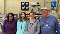 Daniel's Textile Rental also added two new laundry techs:  Brianna Moore and Karly Kotz for current increased volume. Pictured left to right is Beth Frey, laundry plant supervisor; Karly Kotz and Brianna Moore, laundry technicians; and Mark Heekin, general manager, in front of the new chemical system. Daniel's Textile Rental plans to double their space in March of 2020 and further invest in equipment and people.