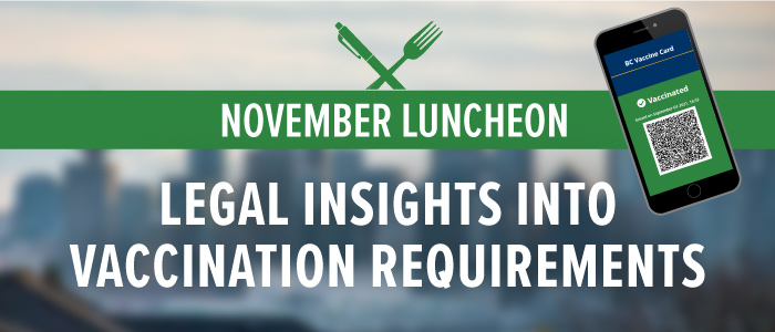 Join us for a luncheon on Thursday, Nov. 18 as our guest speaker from Roper Greyell LLP discusses disclosure rights, privacy laws and how to navigate vaccination policies in your workspace.