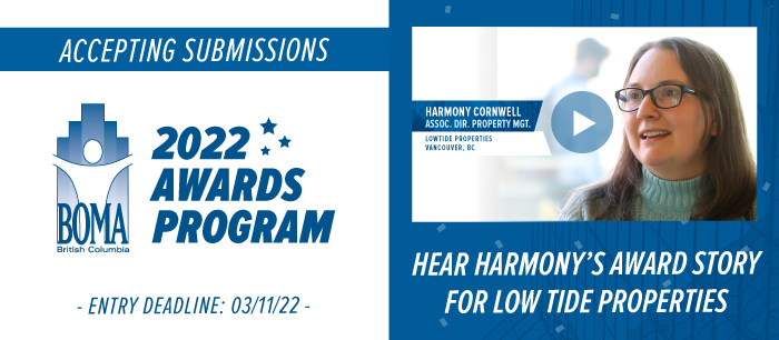 The BOMA BC Awards Program commends those who demonstrate excellence in innovation, teamwork, client services and sustainable measures by recognizing their efforts through the following awards platforms: