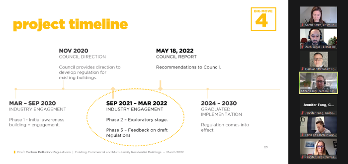 In March and April 2022, BOMA BC facilitated two consultations and a webinar between the City of Vancouver and BOMA BC members to review Vancouver’s draft regulations that will set carbon pollution limits for existing commercial buildings. City Council will be voting on these draft regulations on May 18th, 2022.