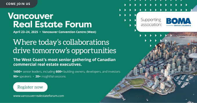 April 23-24, 2025, Vancouver Convention Centre (West) Vancouver, BC Please note: Although the Vancouver Real Estate Forum is not organized by BOMA BC, we are proud to participate as an official sponsor.