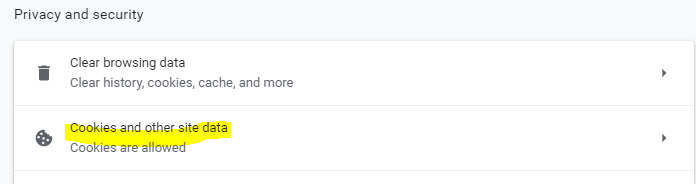 3.       In the “Privacy and Security” section, click “Cookies and other site data”:
