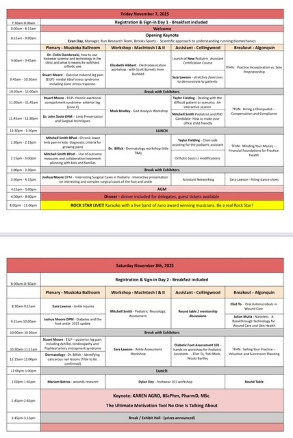 ![]() Join us for an exciting, hands-on pre-conference workshop featuring two specialized tracks designed to boost your clinical skills. Choose between Track 1: CPR Certification, where you'll gain or renew life-saving skills through expert-led training, or Track 2: Taping Techniques of the Foot and Ankle, a focused session on advanced strategies for optimizing patient outcomes. Whether you're a seasoned professional or just looking to sharpen your technique, this workshop offers valuable, practical learning you can apply immediately. Registration is now open—secure your spot today! https://podiatryinfocanada.ca/event-6292366 🌍 Why you can’t miss it: ✅ Learn from international leaders in podiatric medicine ✅ Gain cutting-edge, practical knowledge you can use right away ✅ Take part in interactive, hands-on sessions with surgical experts ✅ Build connections with colleagues & innovators shaping the future of podiatry ✅ Unwind and have fun at our exciting karaoke evening 🎤 backed by a live Juno Award–winning band 🎶 Some of our Featured Speakers: 🔹 Stuart Moore, Advanced Podiatrist – UK Ministry of Defence: Compartment Syndrome & Exercise-Induced Leg Pain 🔹 Dr. Toole, DPM: Limb Preservation & Advances in Patient Care 🔹 Joshua Moore, DPM: Interactive Surgical Experience – Complex Foot & Ankle Procedures This is more than a conference—it’s education, networking, and celebration all rolled into one. Behind every great conference is a team of dedicated volunteers. At the CFPM conference, volunteers are the first friendly faces delegates meet, the problem-solvers who keep things running smoothly, and the driving force that makes the event a success. Without volunteers, there is no conference. This is your chance to: