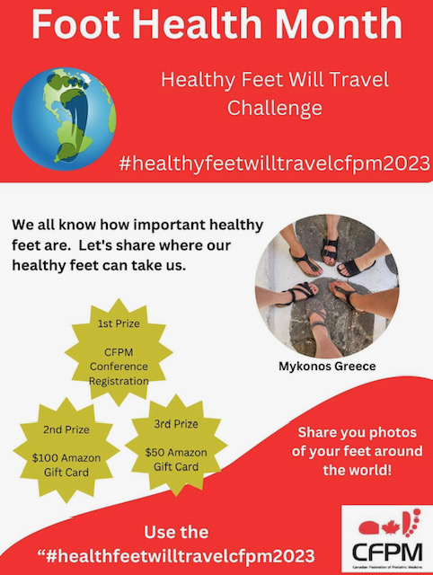 So, let’s see where your feet have travelled take a picture and post, like and tag on social media. #healthyfeetwilltravelcfpm2023
