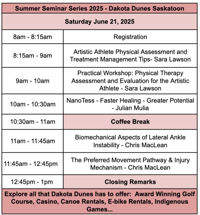 Spaces are limited and selling out fast!! Join us at the stunning Dakota Dunes Resort in Saskatoon for an unforgettable event focused on Sports, Athletes, and Biomechanics.