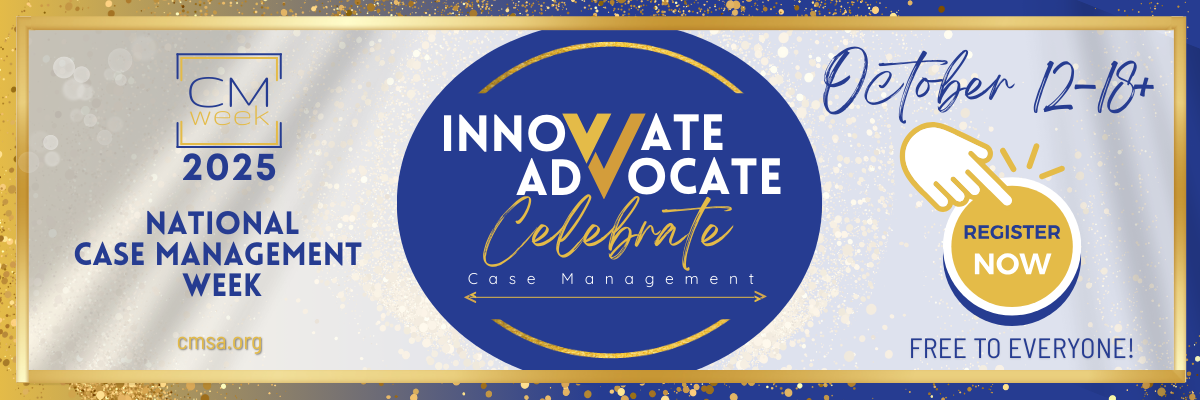 This October, CMSA is rolling out our biggest celebration yet for National Case Management Week 2025—and you’re invited! From October 12–18, and all month long, we’ll come together to Innovate. Advocate. Celebrate Case Management.