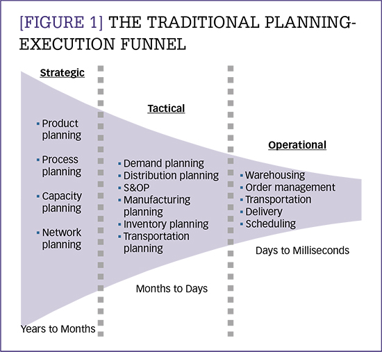 The emerging business and technical architecture for SCM solutions is based on convergence of business processes and time. What does this mean? To draw an analogy, when Steve Jobs introduced the first iPhone in 2007, he started by saying he was introducing three devices: 1) a music player; 2) an Internet-connection device; and 3) a phone. (He could have added a fourth device -- the camera.) And, he said, the three are incorporated into a single device based on a single architecture. This is known as convergence, and it immediately disrupted the individual markets for music players, Internet-connection devices, phones, and cameras. Likewise, the business architecture of tomorrow will see increasing process convergence and collapsing of time boundaries between planning and execution.