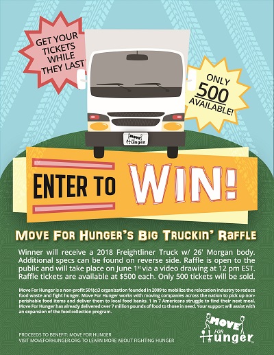 Move For Hunger is raffling off a brand-new, 2018 Freightliner Straight Truck! Only 500 tickets will be sold. How about them odds?!