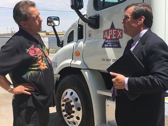 Denny Wyatt giving Senator Scott Wilk (R-Santa Clarita) a tour of Apex Logistics’ facility in Adelanto.