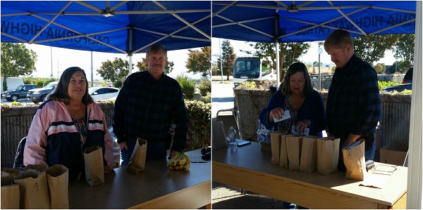 Jay Johnson, Jay Johnson & Associates, LLC and Lindamar Mirassou Morehouse, G & L Supply, handed out healthy snacks and waters to truck drivers and CHP personnel on November 6 at the CHP Amensty Day in Gilroy. During the event, all commercial vehicle drivers were invited to bring their commercial vehicles to be inspected at the facility.