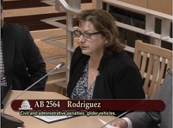 Last week, California Trucking Association (CTA) President Lynnette Brown testified on behalf of the Association for its sponsored legislation, AB 2564, in front of the Senate Environmental Quality Committee. The Committee voted 5-0 to advance CTA's sponsored bill, AB 2564 by Assemblymembers Freddie Rodriguez and Eloise Reyes. AB 2564 will increase penalties for fleets found to be operating non-compliant glider vehicles, glider engines, or glider kits. |
